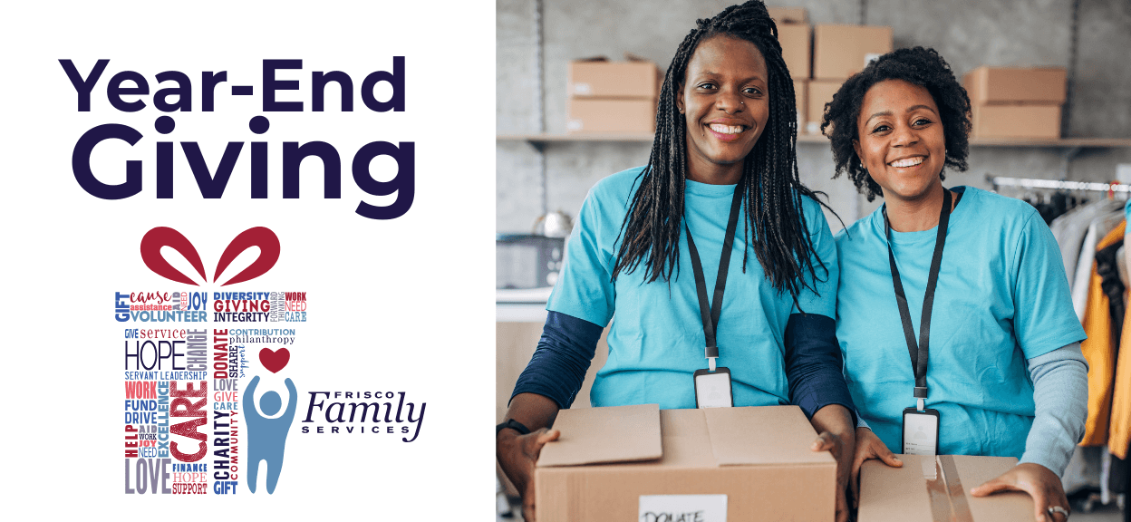 For more than 30 years, Frisco Family Services has helped members of our Frisco and Frisco ISD communities who are facing hunger, homelessness, and other urgent needs improve their quality of life and achieve self-sufficiency.